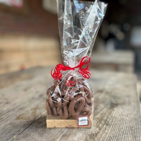 Ambachtelijk gemaakte krakelingen van de allerlekkerste Callebaut chocolade. Heerlijk bij de thee of koffie, of gewoon als tussendoortje. Verkrijgbaar in puur, melk, wit en gemengd.