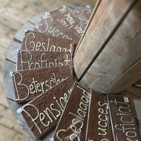 Bovendien is het leuk om een persoonlijk geschreven reep toe te voegen aan een ander chocolade geschenk en zo een uniek cadeau samen te stellen. Of uw reep in een luxe cadeautas, dit maakt het helemaal af.